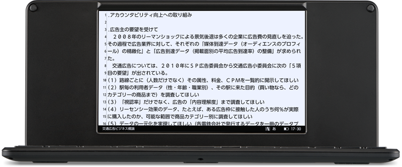フォントはゴシック・明朝で表示でき、文字のサイズを6段階から選ぶことができます。