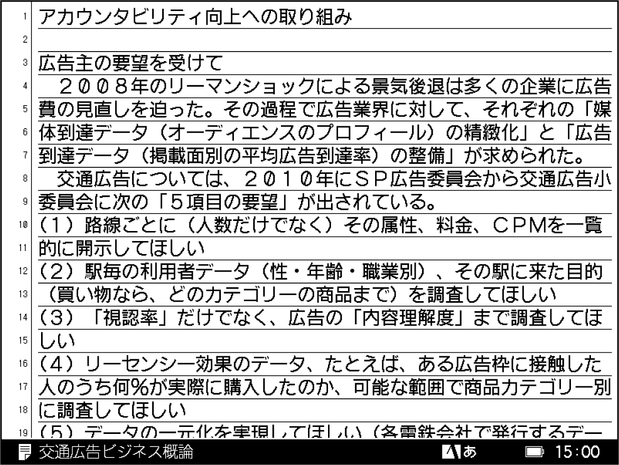 行番号がひと目でわかるため、長い文章を書くときの目安となって便利です。背景にグリッド(罫線)の表示をすることも可能です。
