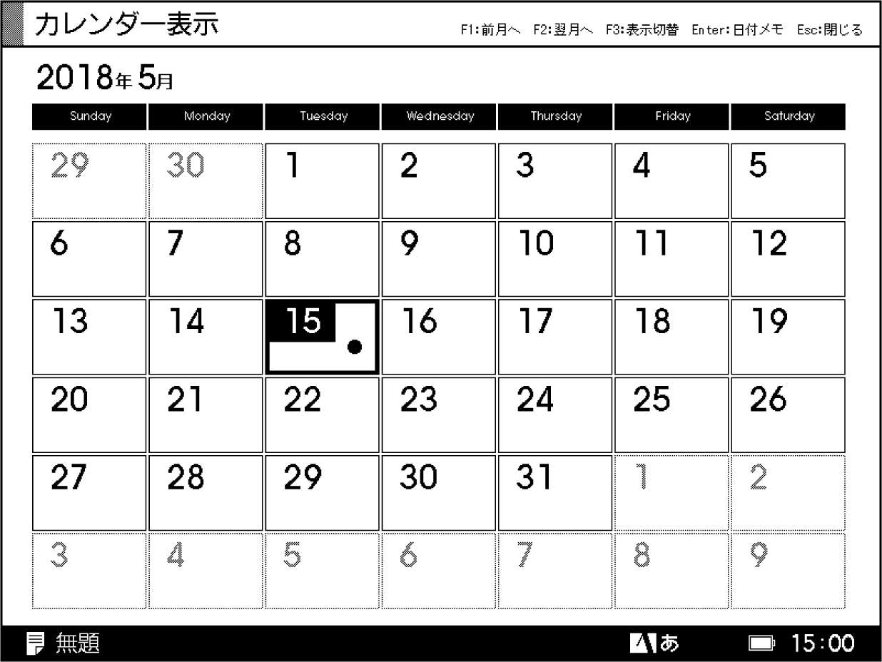 「日付メモ」はカレンダーの日付ごとに管理できるメモです。その日のToDoや記念日、日記などスケジュール帳としても利用できます。保存形式は一般のファイルと同様にテキストファイルなので、パソコンでの編集も可能です。