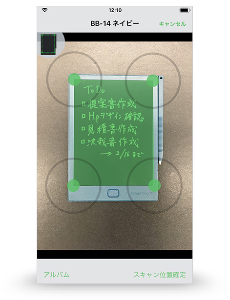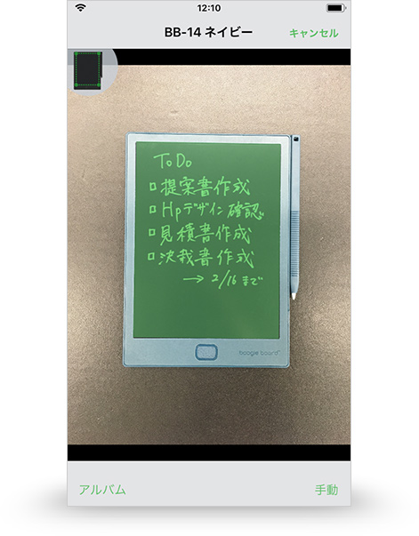 ブギーボードに書いたメモを、スマートフォンのカメラでスキャンして簡単に画像化ができるアプリです。