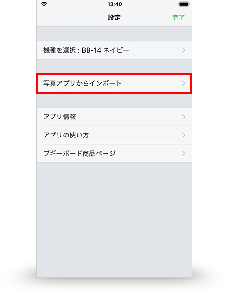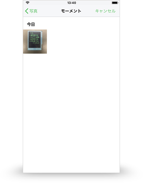 スマートフォン純正カメラ機能で、ブギーボードの液晶を撮っている場合、「写真アプリからインポート」を選択することで、本アプリ内に画像として移行できます。