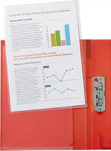 クリアーホルダーもそのまま入る「ワイドオープンポケット」付き。「紙揃えガイド」を使って簡単に書類を整えられる。