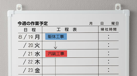 建築土木現場の道具や工程表などに使うラベルの作成がスムーズになり、作業効率が上がります。