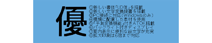 より多くの人に読みやすくわかりやすいユニバーサルデザインフォント「UD体」を新搭載!視認性・可読性に優れているので、多くの人が目にする案内表示などにもおすすめです。