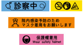 オフィスや製造現場での注意喚起、店舗POPなどのさまざまなシーンで使える、記号・絵文字、外枠、フォームのラインアップが充実しています。