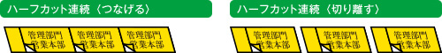 「ハーフカット」連続印刷時に、ラベルをつなげて印刷するか、1枚ずつ切り離すかを選択できる「ハーフカット連続」設定を新たに搭載しました。ラベルを1枚ずつ使用する場合や、配布する場合に便利です。