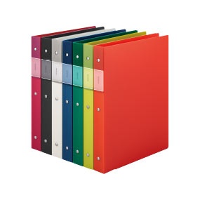 ポケットの追加が簡単なリング式ファイル。表紙と台紙を同系色でそろえました。
