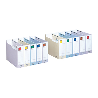 書類を投げ込むだけでシステマチックに分類できる再生ボード製のボックスファイル。