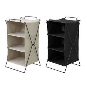 折りたためて衣類をたっぷり収納できるシェルフ。