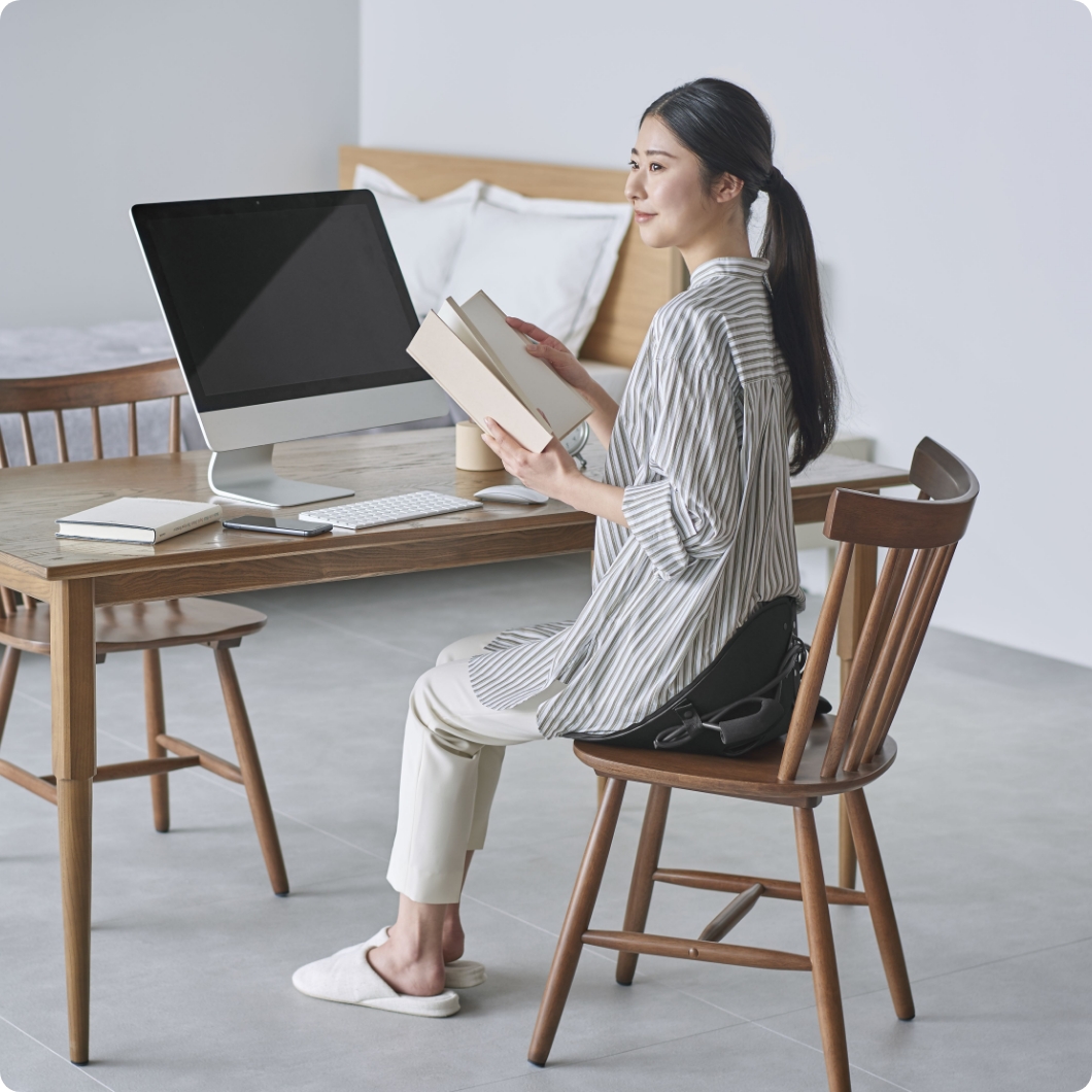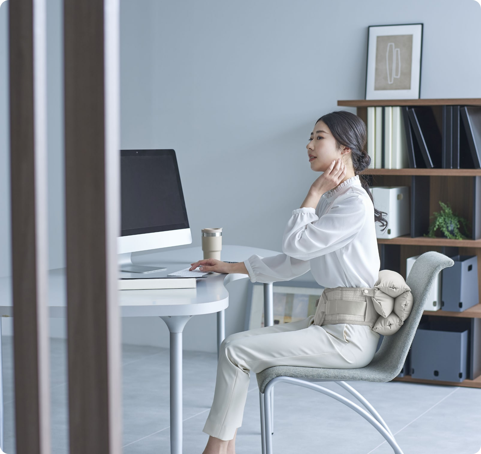 長時間のデスクワークや家事・育児など、目まぐるしく過ぎていく日々のちょっとした時間で、カラダやココロをほぐすことができます。 仕事がはかどり、プライベートはさらに充実した毎日に。