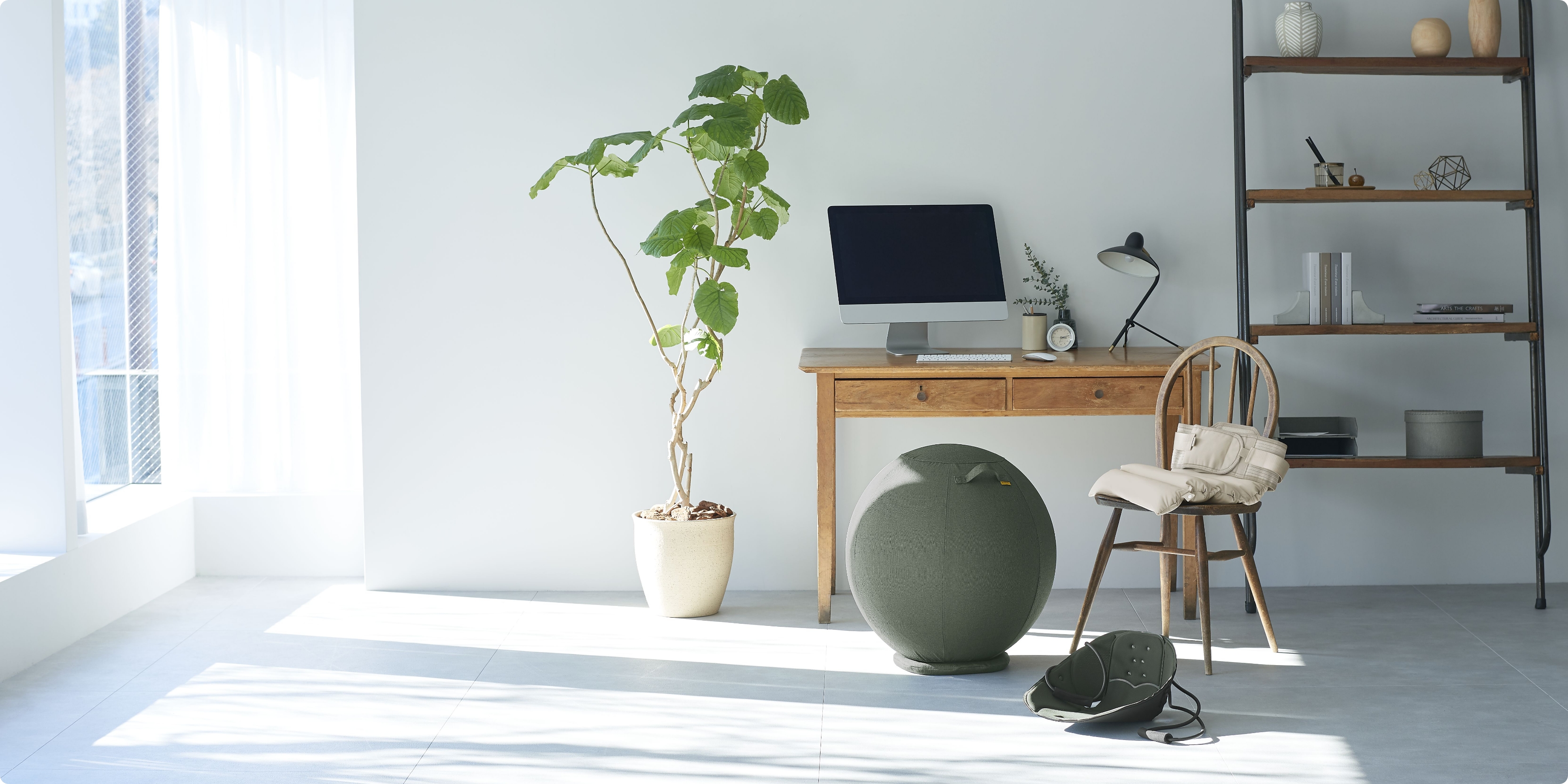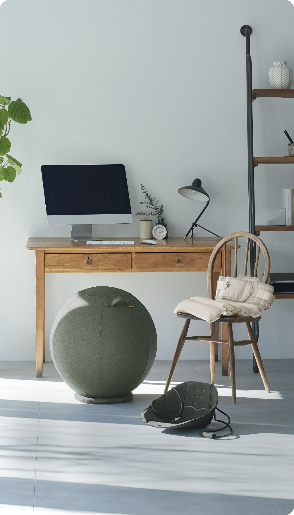 自宅でもオフィスでも。 使う場所を選ばない、スタイリッシュで落ち着いた2色を選びました。 どんなテイストにも溶け込むサンドベージュと、ほどよく空間のアクセントになるディープグリーン、お好きな色をお楽しみください。