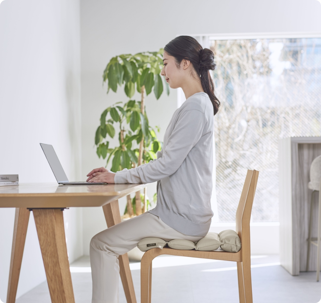 お悩みに合わせてクッションの使い方を選び、座り姿勢をケアできます。