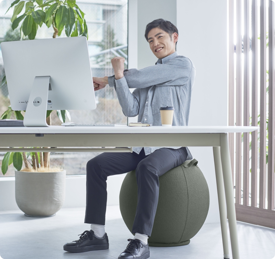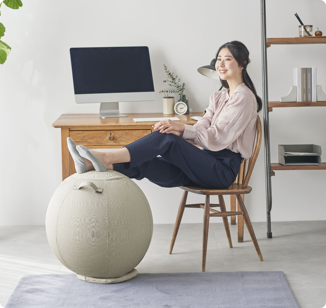 バランスボールに座ると、自然とまっすぐな姿勢になり体幹を整えることができます。常に不安定な状態で座るので、腰まわりの筋肉をほぐすことにもつながります。