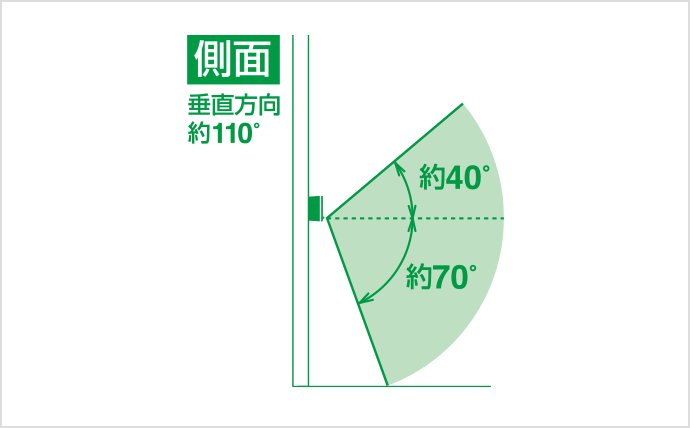 | 感知角度 | 水平方向:約120° 垂直方向:約110°