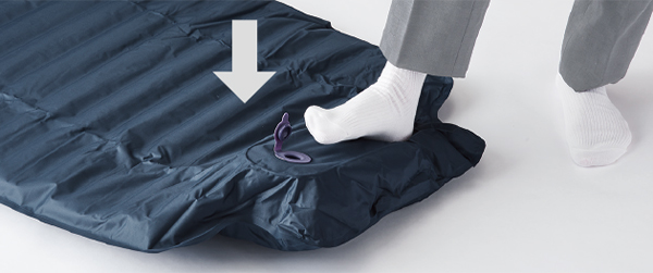 | 材質 | マット:ポリエステル(表面にTPUコーティング) 内蔵ポンプ:ポリウレタンフォーム、TPU 収納袋:ポリエステル(表面にPAコーティング)、PP、POM |