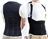 肩から脇を通り腰まで繋がった左右のベルトは、X字に交差して身体にぴったりとフィット。姿勢を矯正して上半身の負担を軽減します。