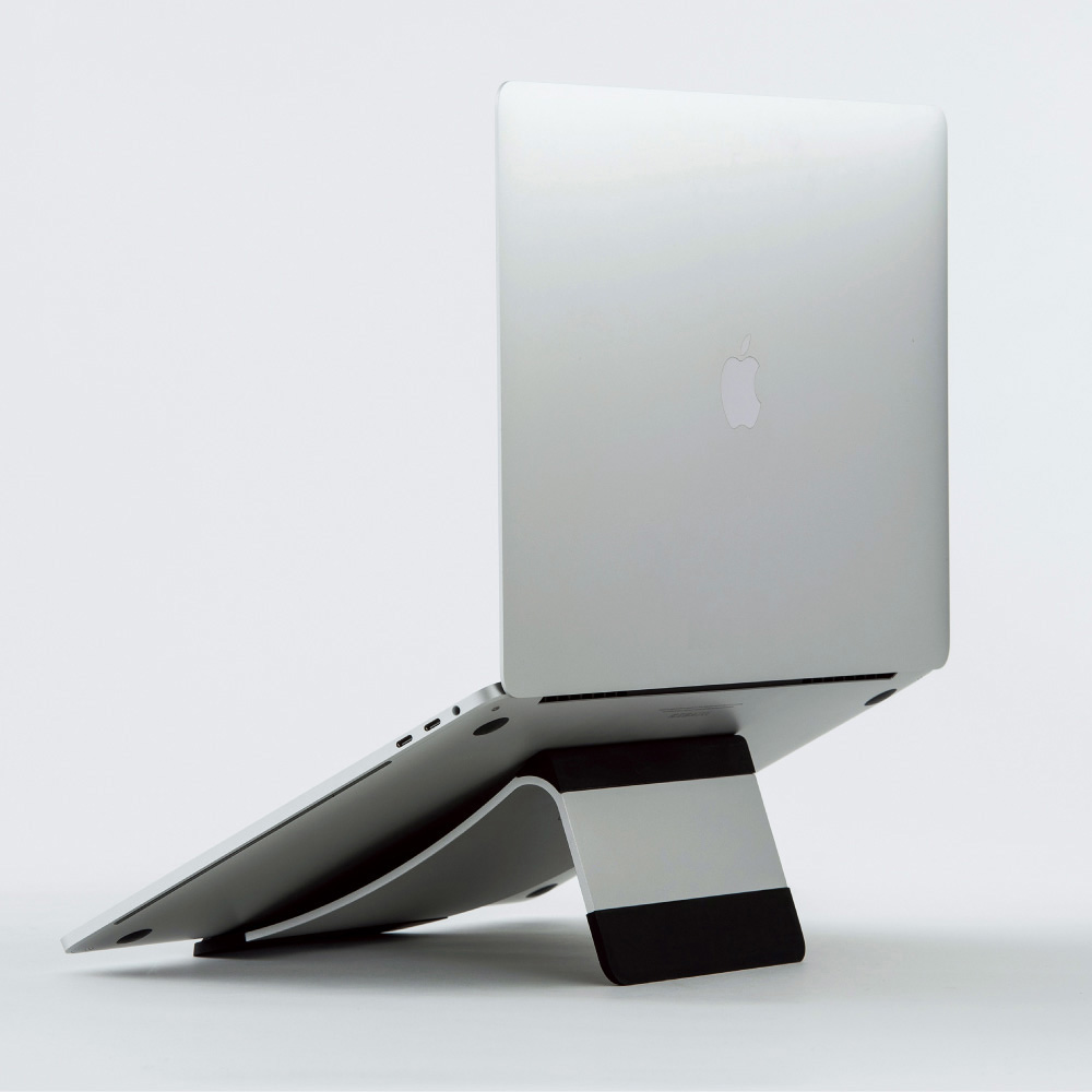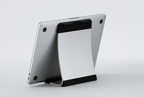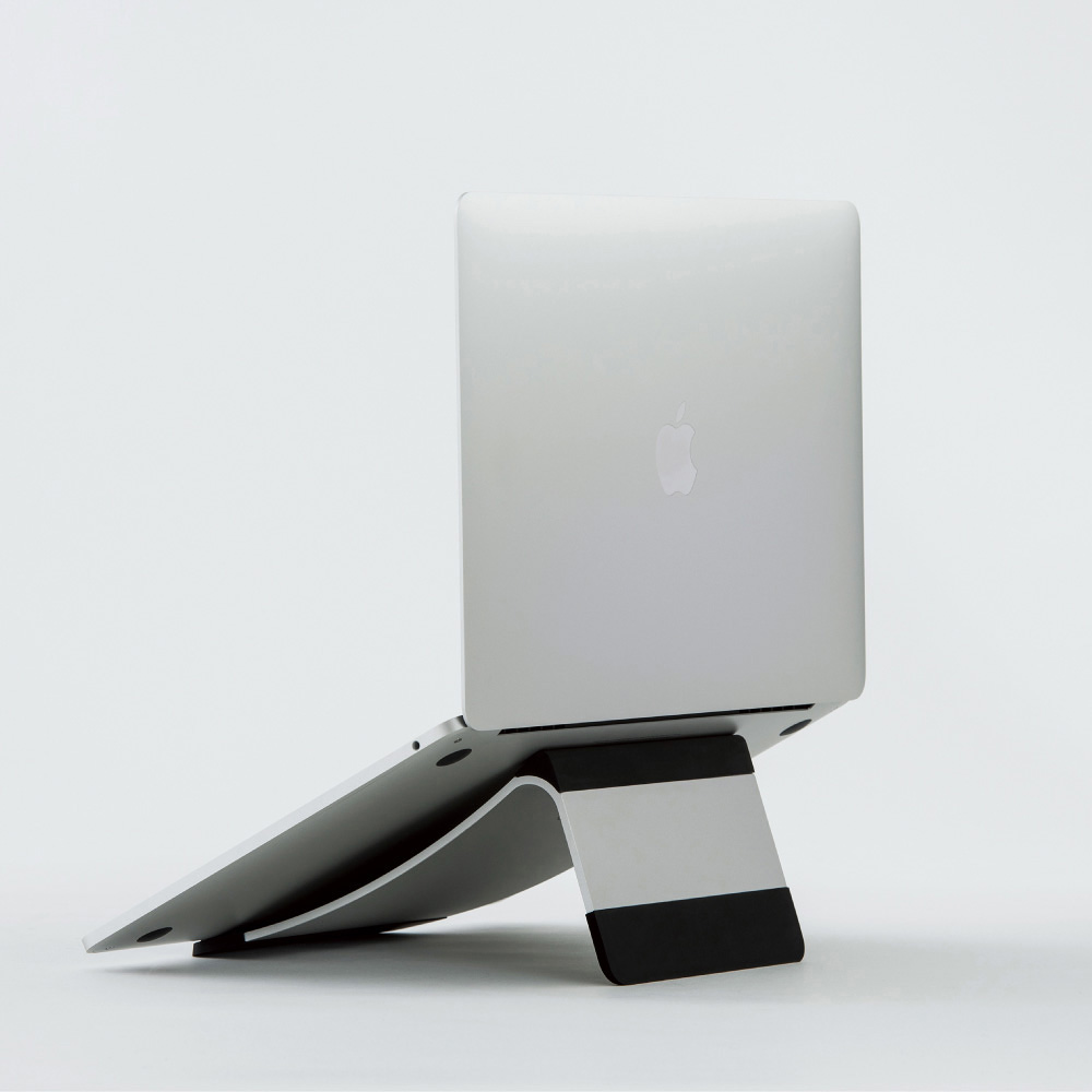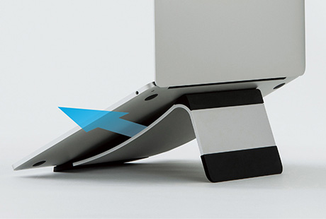 優れた熱伝導性をもつアルミニウムと、ノートパソコンとの通気性を確保することによって、冷却性を高めます。