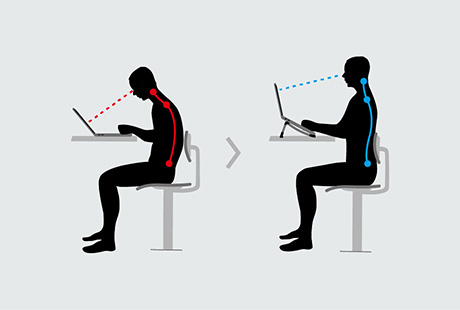 ノートパソコンのディスプレイを目線の高さに上げることで、身体への負担を軽減し、作業の快適性が向上します。