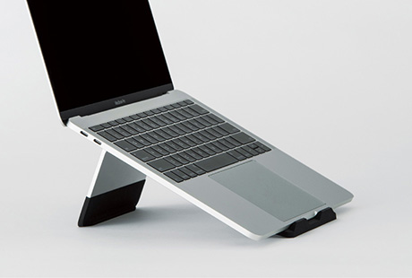 ノートパソコンを使わないときには、立てかけて置けるので、デスクの上を広く使えます。