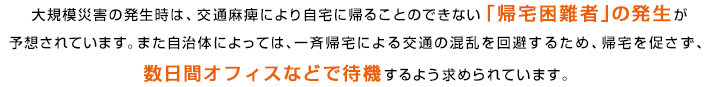 ![余震の際も安心、着たまま“すぐに”歩ける「着る布団」 災害時にオフィスや学校、避難所で待機する場合、椅子やソファ・床に直接寝るのは体に負荷がかかってしまいます。かといって、通常の寝袋だと、余震などで緊急に動く必要がある際に、簡単に脱ぐことができません。 着る布団なら、着たまま手足が動かせるので、緊急時でもすぐに動くことができ、靴を履いたまま脱ぎ着することも可能です。また、エアーマットも付いているので、硬い床に直接寝る必要もありません。 2種類のラインアップ 歩ける寝袋!首まわり調整可能!折り返し可能! [フリーサイズ]BFT-001 モデル身長:約171cm、バスト:94cm、ウエスト:86cm、ヒップ:91cm [Sサイズ]BFT-002 モデル身長:約145cm、バスト:65cm、ウエスト:58cm、ヒップ:72cm](/resource/images/products/office/img-bft-04.jpg)