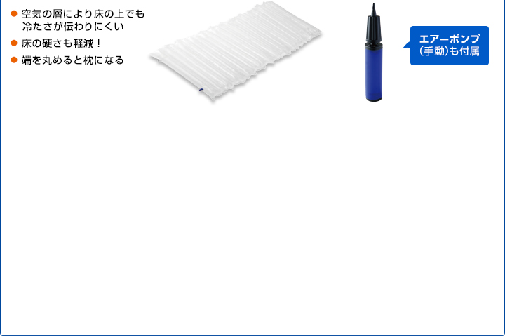 | セット内容 | エアーマット・エアーポンプ(PP製) | ||