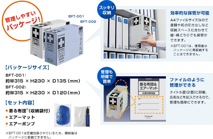 管理しやすいパッケージ。いざという時、すぐ使える!