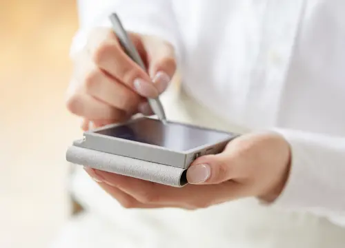 大きな画面(約4インチ)消去ボタンを側面に配置し