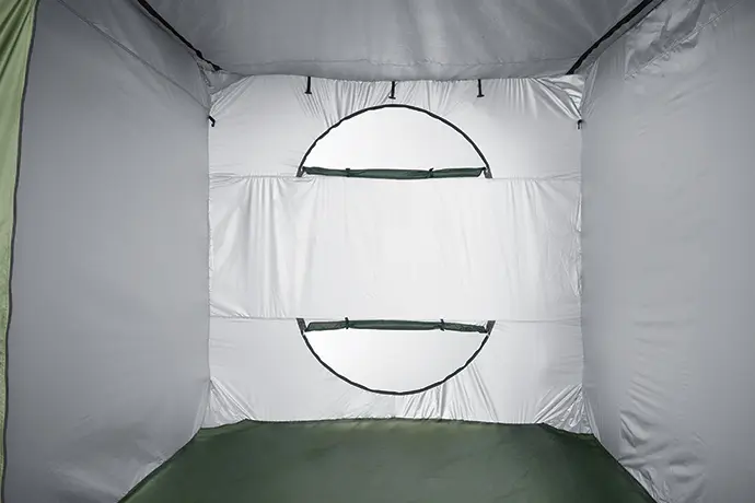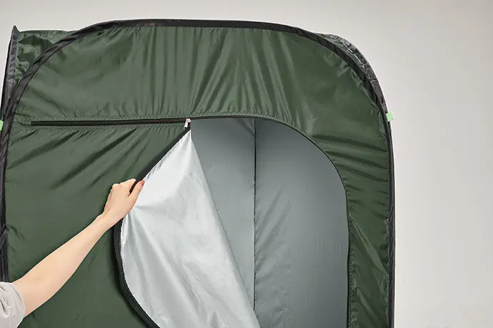 換気や採光も簡単で、大人3人まで入れる広々サイズ。