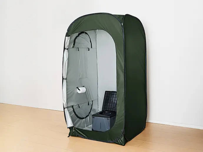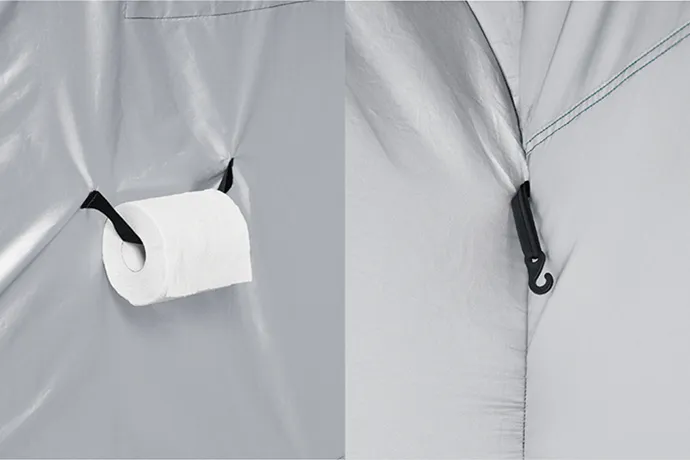 ホルダーにはトイレットペーパーやタオル、テント内上部のフックには紐付きのライトなどをかけられます。