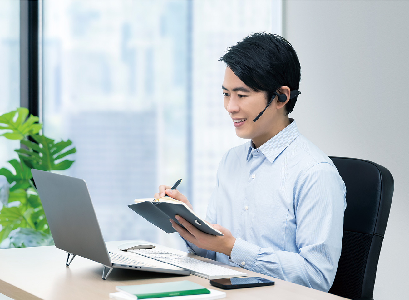 Web会議やオンラインレッスンなど長時間使用したいシーンに。