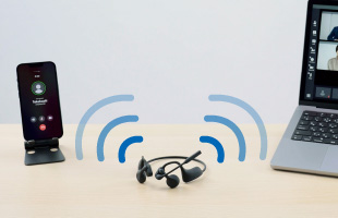 2台のBluetooth機器に同時接続できるため、2台のスマートフォンに接続してどちらの着信にも対応することができます。