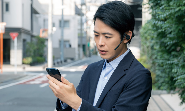 店舗・物流スタッフや点検・倉庫の作業中などハンズフリー通話が必要なシーンに。