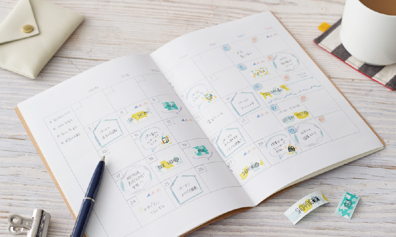 手帳をかわいく見やすくテープの色柄を変えたり絵文字を使って、手帳をつけてみましょう。
