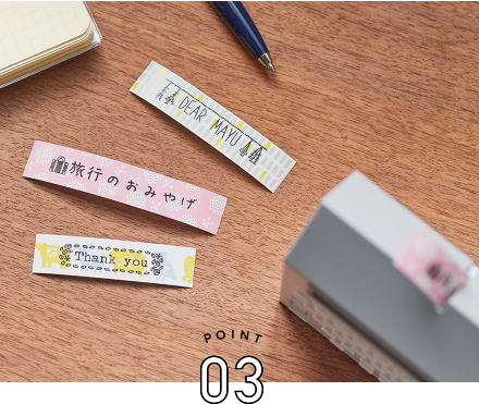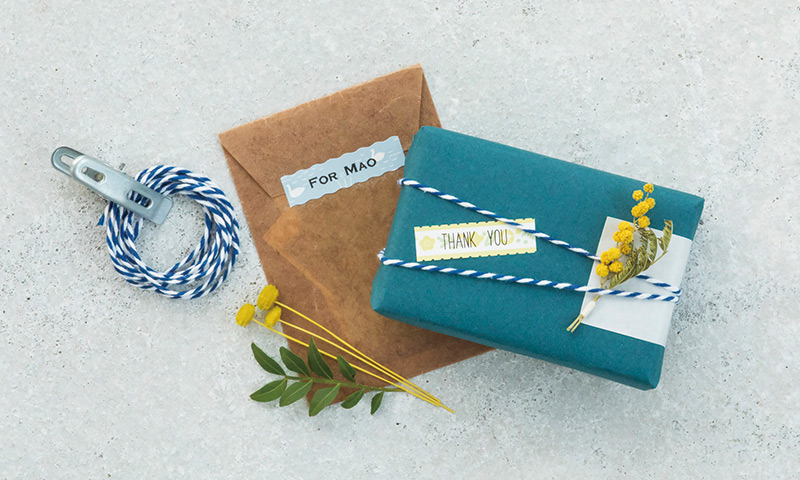 あとは、もの作りをしている作家さんなら、販売する商品の値札ラベルとしてもいい。テープの柄や色をシチュエーションによって使い分けると、さらに用途が広がりそうです。
