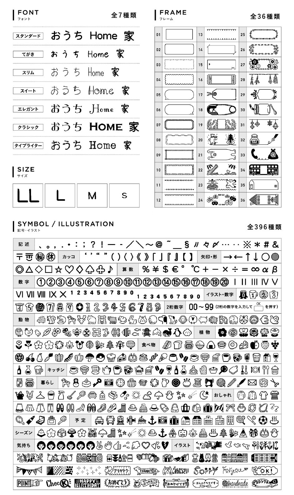 | フォント | 7種類 (漢字は「スタンダード」または「てがき」のみ) |