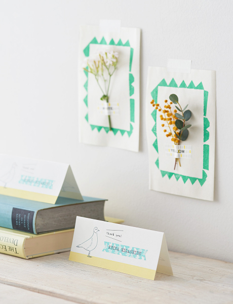 ホームパーティーに招待した人たちの席札を作って、お迎えするのもいいサプライズ。名刺サイズの紙に名前や連絡先を印刷したラベルを貼れば、簡単な自己紹介にも使えますね。