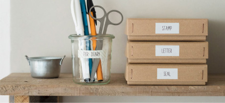 中身を隠さないラベリングで、小物に彩りを添えます。