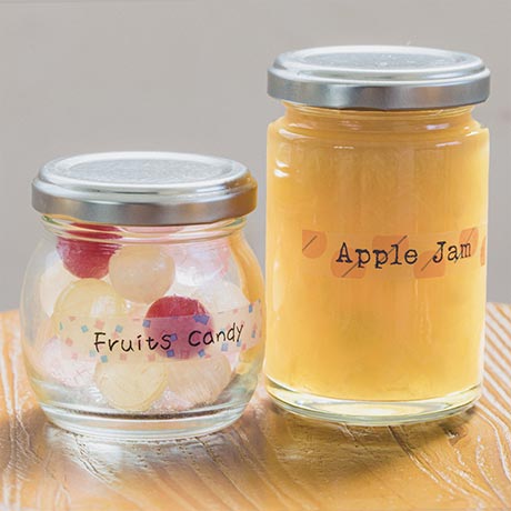 シンプルな容器にも、ちょっとしたアクセントと統一感が生まれます。