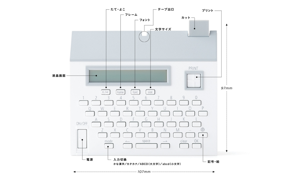※テープのセット方法や文字の入力方法など、詳しい使い方は取扱説明書をご覧ください。