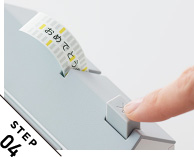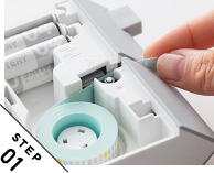 単4アルカリ乾電池と専用テープをセットし、電源を入れます。