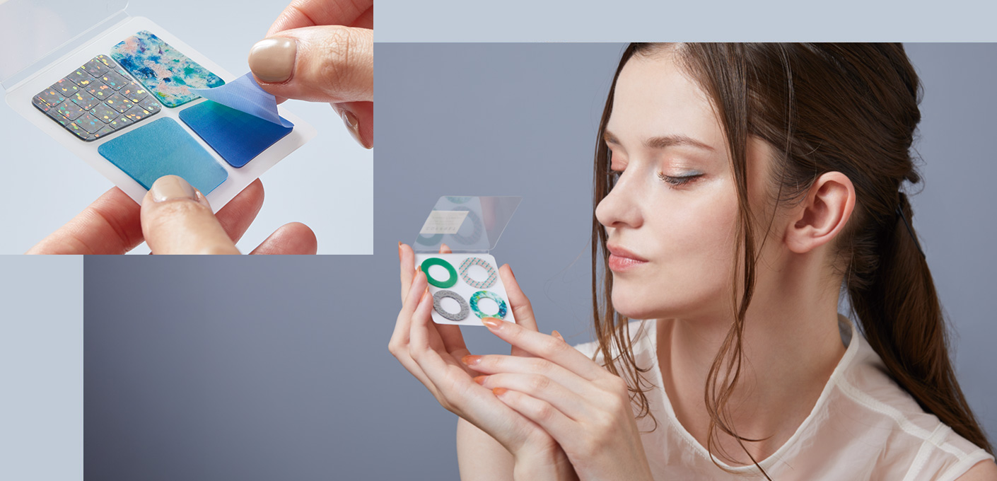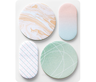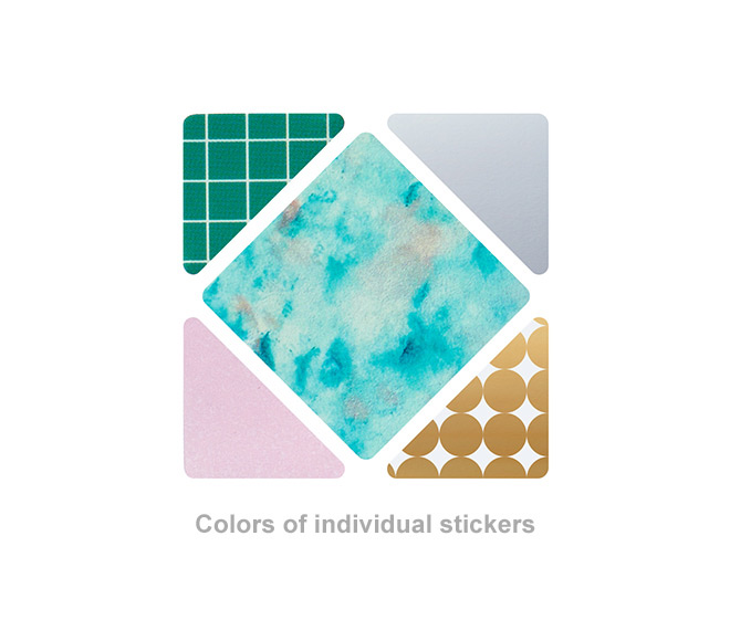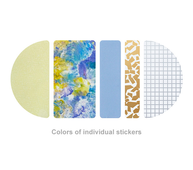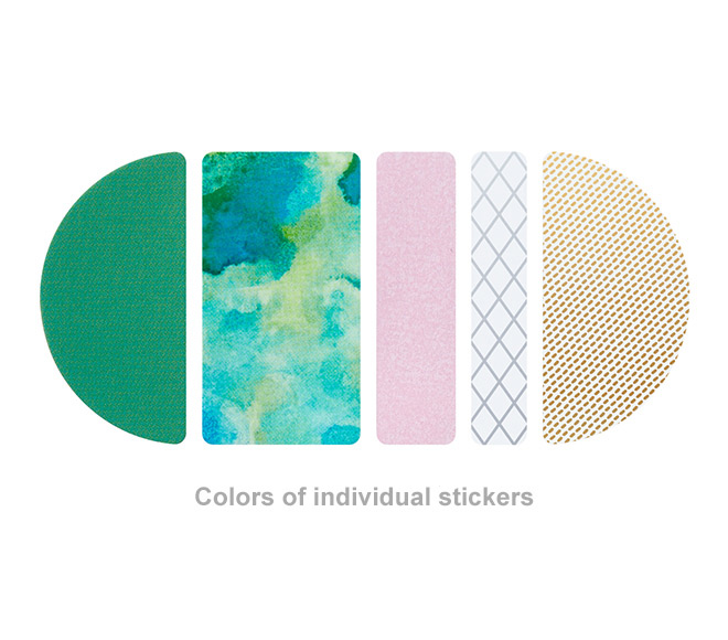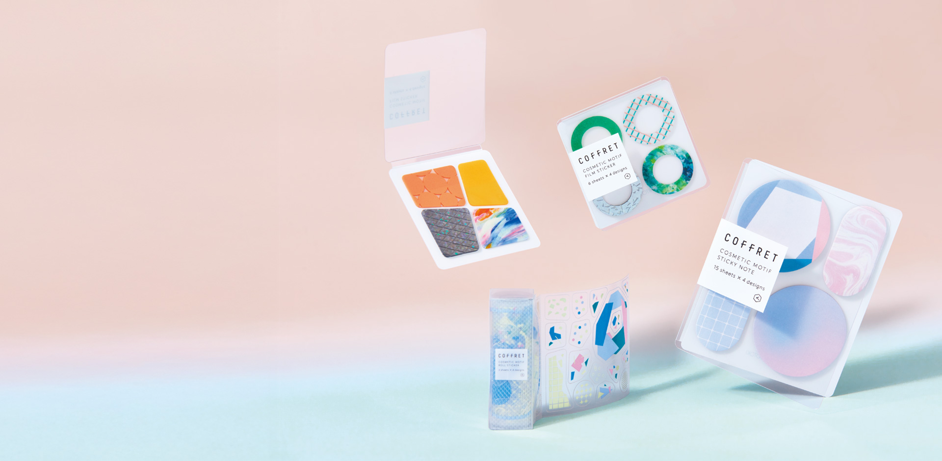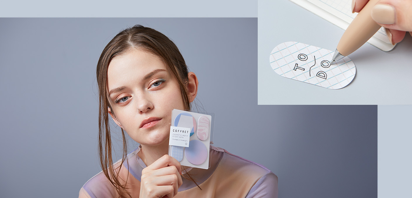 Cosmetic-inspired stickers and sticky notes with fascinating, subtle colors and shimmering foil accents
