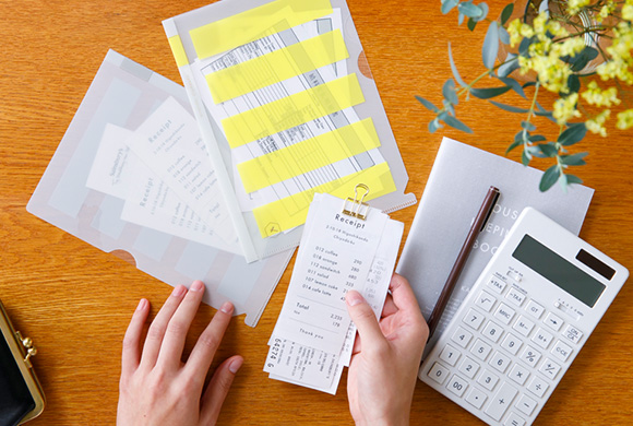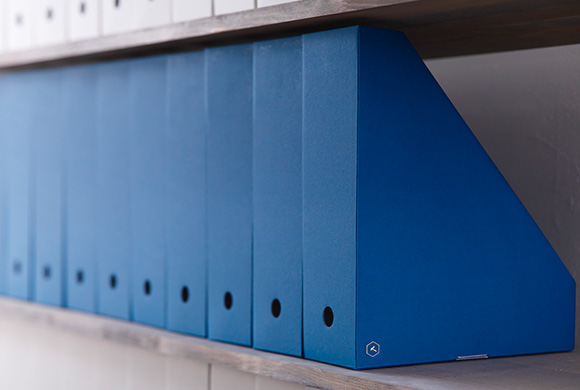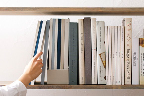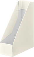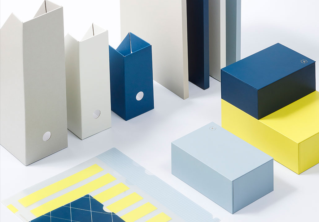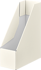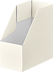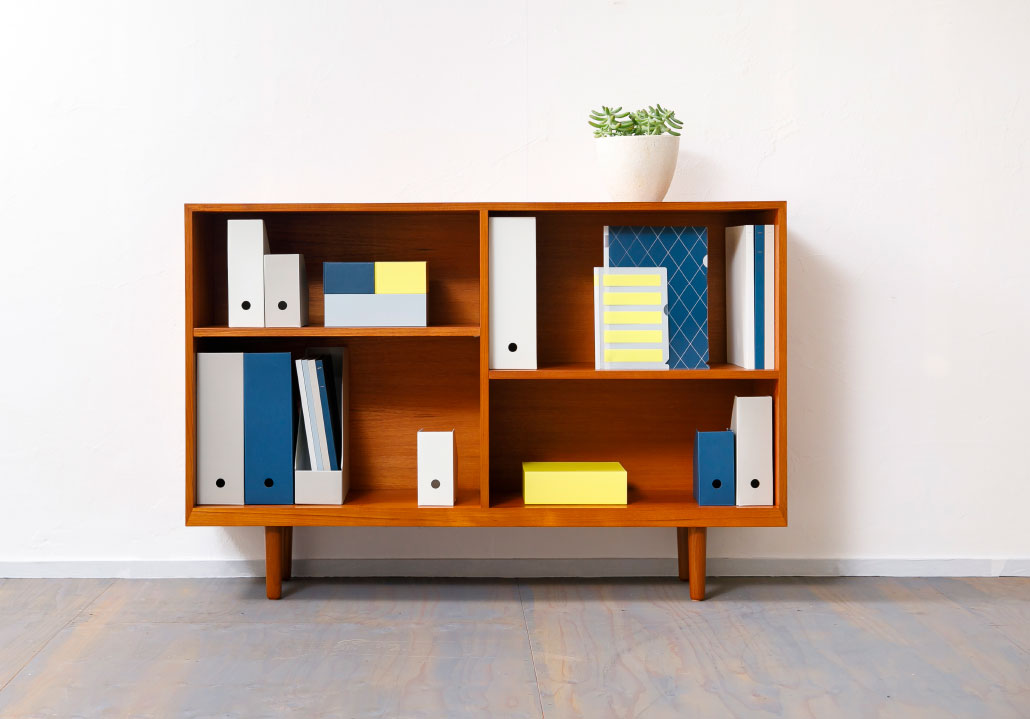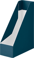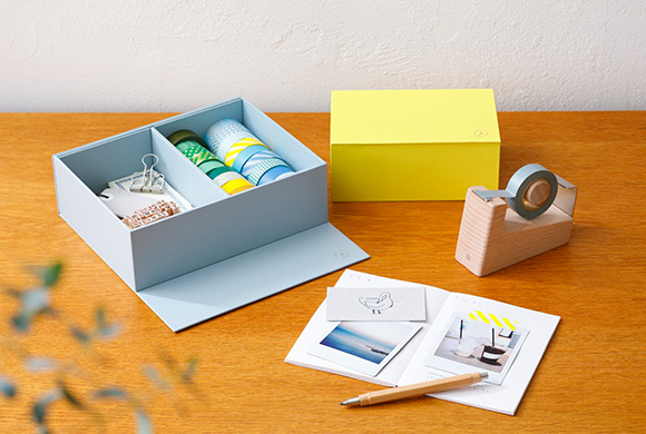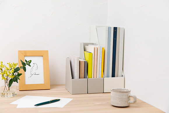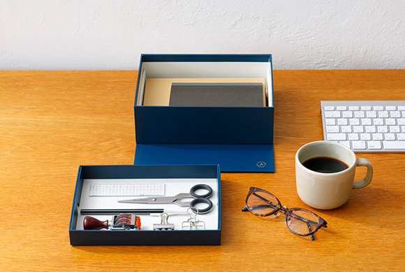 The lower space is for notebooks, the upper space is for pens, clips, stickers, etc.