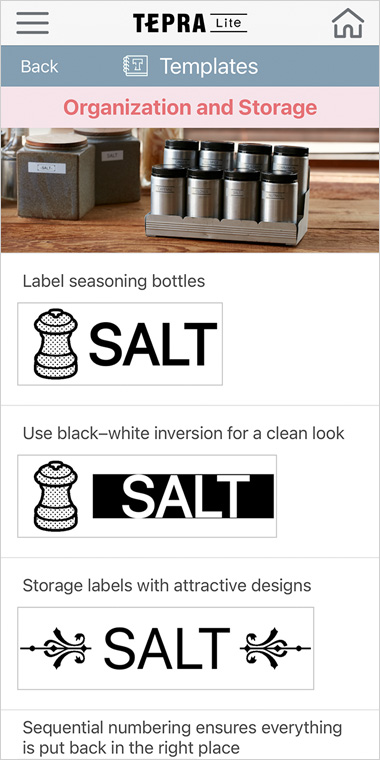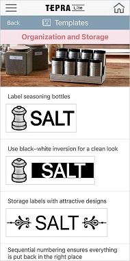 A wide range of predesigned label templates are available on the app for convenient and quick usability. Simply select the design you like, and press print.