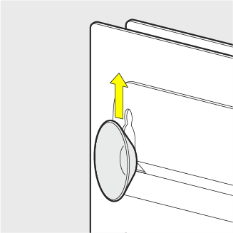Place the suction cup in the hole at the back, then slide upwards and secure.