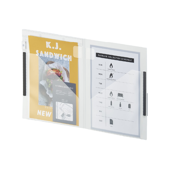 ●Please note that if you insert paper beyond the capacity, the cover of the file may not close, the pocket may be damaged, or the file may fall due to the weight, causing injury.