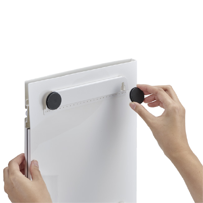 HARUFILE can be stuck on metal surfaces using the optional magnet set