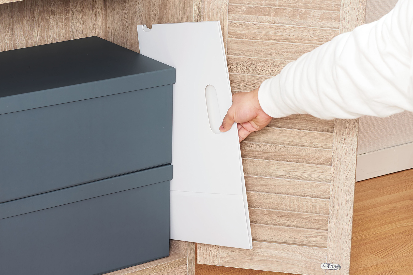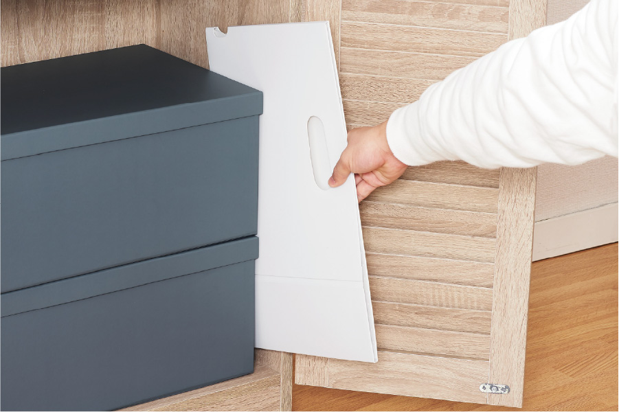 The box can be easily folded and stored in a small gap when not in use.