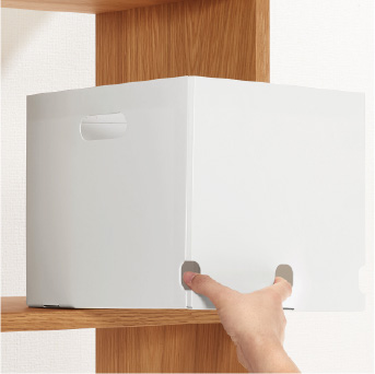 The box can be easily folded and stored in a small gap when not in use.