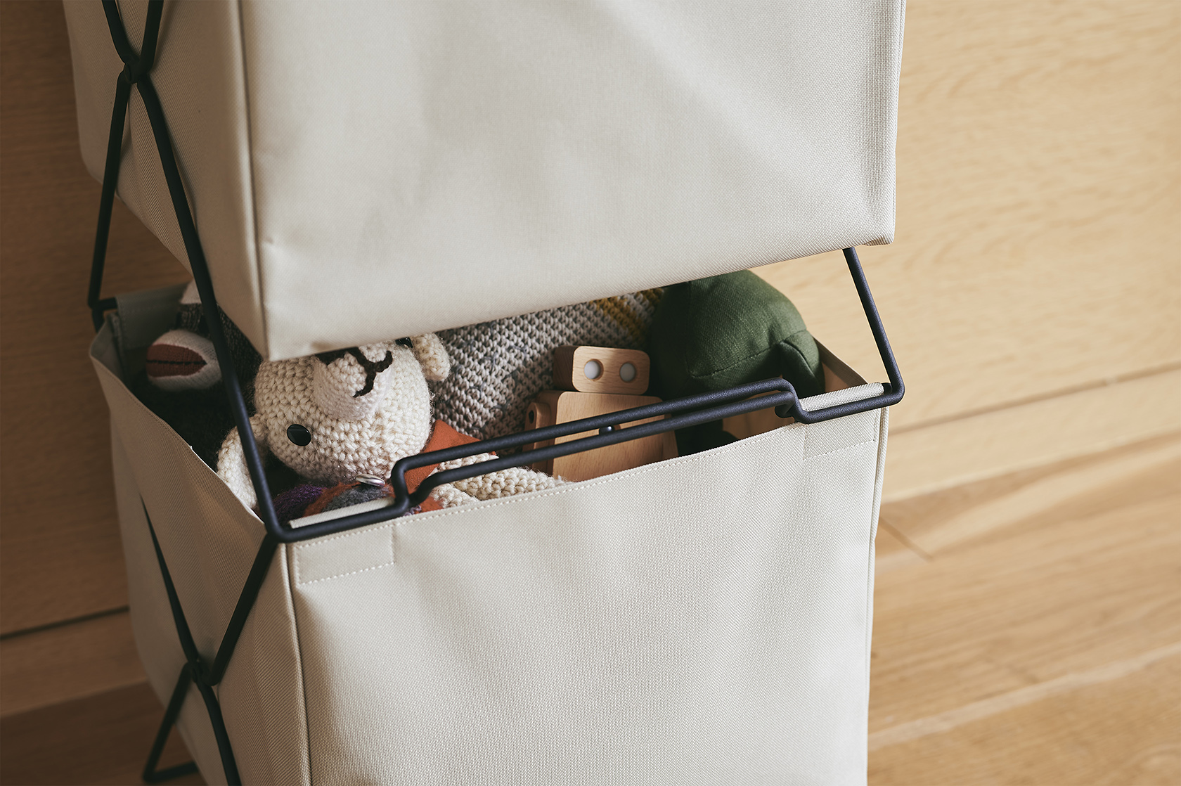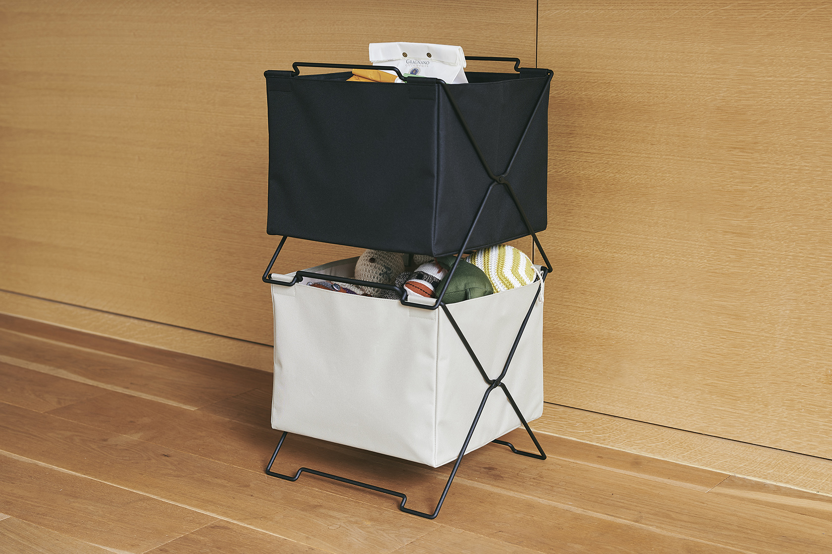 STACK BASKET (No.KSP002S) and STACK BASKET CHEST (No.KSP002SC) are stackable each other.