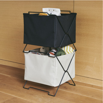 STACK BASKET (No.KSP002S) and STACK BASKET CHEST (No.KSP002SC) are stackable each other.